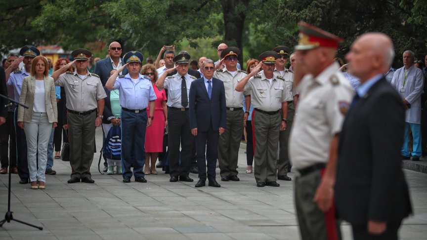 "Знаете, че и през последните няколко години по време на пандемията от Ковид-19 загинаха над 120 медици. Поклон пред паметта им. За нас е важно да дадем пример и нашите курсанти-военни лекари, които ще се дипломират през октомври, да осъзнаят, че нашата професия не е само да даваме живот, не е само милосърдие, а и е много рискова професия. Те са единствените лекари, които се заклеха и пред трикольора да отдадат живота си за Родината. Затова съм изключително респектиран от тяхната саможертва от самото начало", заяви началникът на ВМА генерал-майор проф. д-р Венцислав Мутафчийски, д.м.н., FACS.