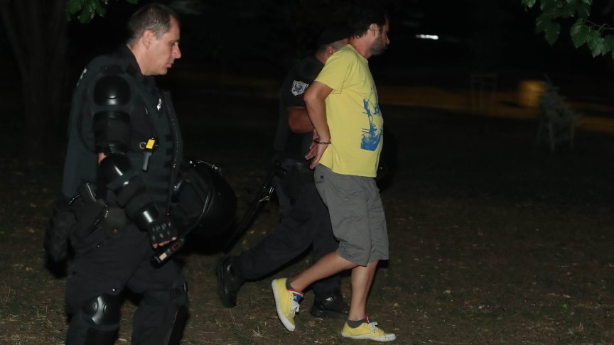 Полицията не позволи да се стигне до сблъсъци. Има задържан мъж, който е счупил бутилка в близост до паметника. В него са били открити малки количества наркотици. От СДВР уточниха, че арестуваният е откаран в Първо РПУ. Образувано е досъдебно производство.