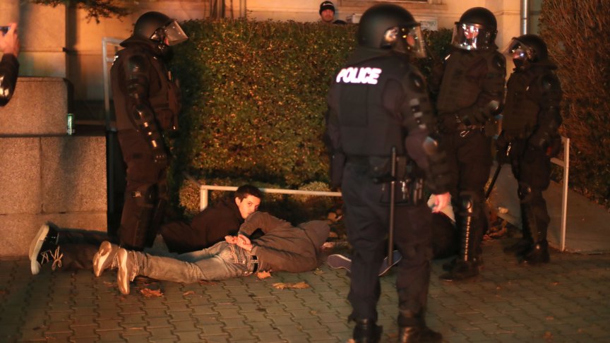 Състоянието на единия от пострадалите, който е диагностициран с хифема (кръвоизлив в предната камера на окото), е наложило да бъде хоспитализиран. Той е пострадал от водното оръдие.