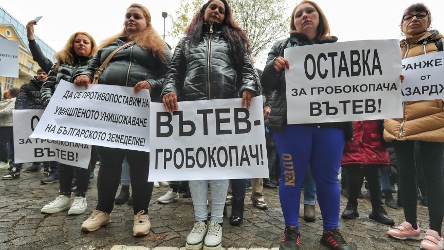 Протестиращите настояват за оставката на земеделския министър Кирил Вътев.