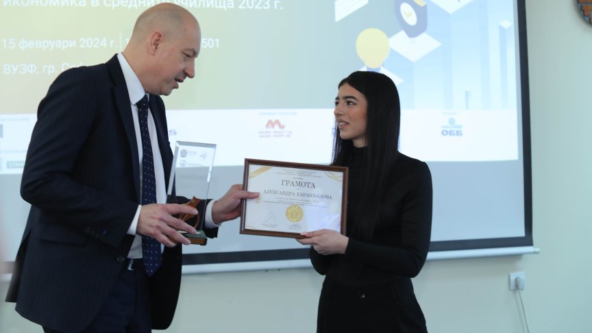 Висшето училище по застраховане и финанси раздаде за първи път награди за образование по икономика в средните училища за 2023 година. С тях отличиха най-добрите, показали умения и познания на национални и международни състезания и олимпиади.