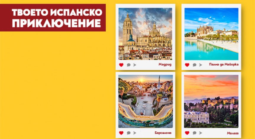 Идва това време на годината, когато слънцето изгрява по-рано, дните са по-топли, а желанието за почивка и приключения се обажда все по-често. Една седмица, прекарана на слънчевите плажове на испанските курорти - Палма де Майорка и Малага или кратко бягство през почивните дни с разходки в пищната и величествена Барселона ви очакват само на един полет разстояние.