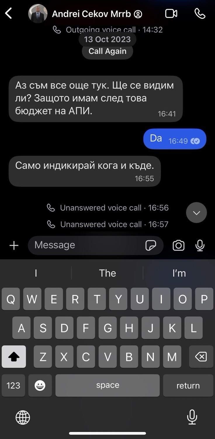 Лидерът на "ДПС - Ново начало" Делян Пеевски публикува част от чатове с бившия министър на регионалното развитие Андрей Цеков.