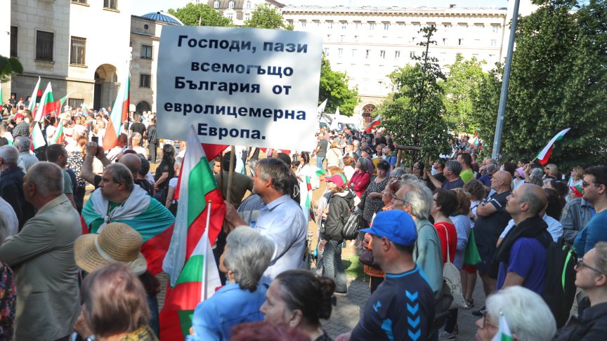 "Българският лев е нашата гордост. Обиколихме Европа, видяхме я. Няма нужда сега да ни омайват и да ни обясняват, че ще сме по-добре", заяви жена от демонстрацията.