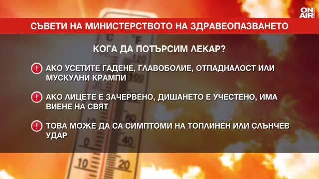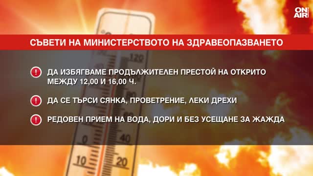 Възрастните, хронично болните и децата да не излизат навън в най-горещите часове на деня.