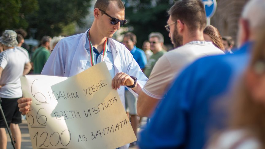 Младите лекари излязоха на протест пред сградата на парламента. Миналата седмица депутатите се заеха с отговора на исканията им.