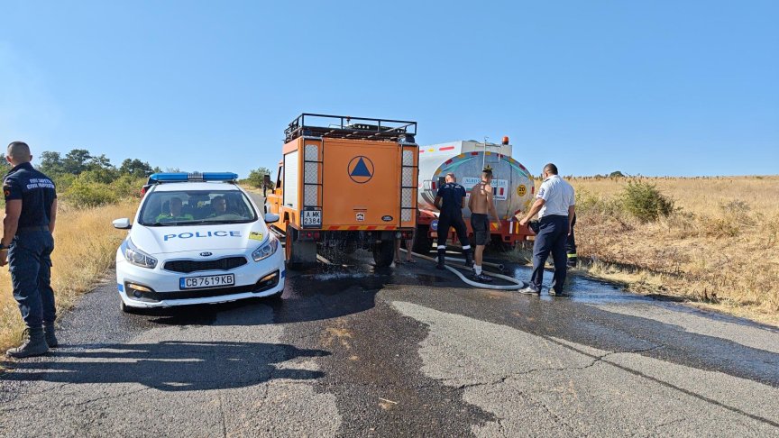 Продължава гасенето на пожара в района на сунгурларското село Славянци, където се запалиха гори, земеделски земи и лозови масиви.