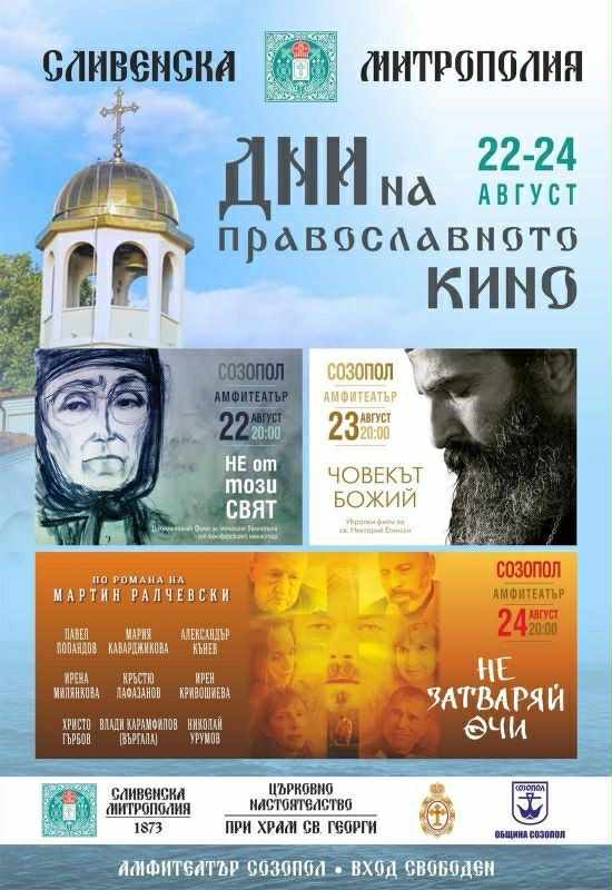 Дни на православното кино започват от днес в Созопол. В продължение на 3 дни жители и гости на курортния град ще могат да гледат безплатно няколко от най-вдъхновяващите ленти за вярата, надеждата и упованието в Бога.