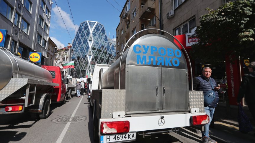 Земеделски производители излязоха протест в защита на българското производство. Демонстрацията се провежда пред сградата на Европейския парламент в София.