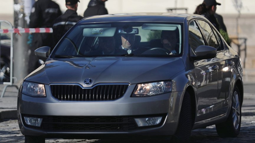 Президентът Румен Радев посрещна Тамаш Шуйок с личния си автомобил пред паметника на Незнайния воин в София.