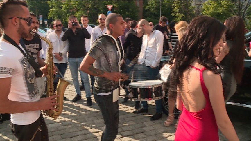 Сред момчетата нямаше изненади - черни, сиви и сини костюми като всяка година. А момичетата - с всяка следваща година започва да преобладават "чалгаджийските" тоалети, сигурно замествайки големите и тежки рокли.