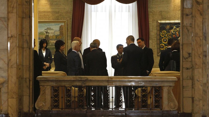 В "Гербова зала" започнаха да влизат основните политически сили и представители на всички парламентарно представени формации, които ще разговарят с президента и ще търсят възможен изход от тази ситуация. Сред присъстващите бяха премиерът Борисов, министърът на вътрешните работи Румяна Бъчварова, министърът на финансите Владислав Горанов и министърът на външните работи Даниел Митов.