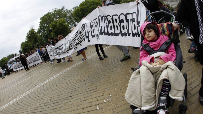 Протестиращите донесоха и ковчег - поводът е, че след навършване на пълнолетие парите и грижите за хората с увреждания рязко намаляват.