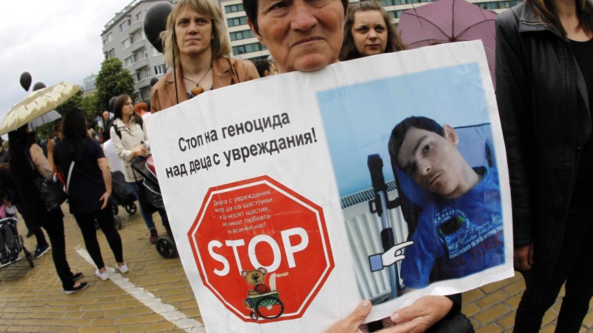 Протестиращите донесоха и ковчег - поводът е, че след навършване на пълнолетие парите и грижите за хората с увреждания рязко намаляват.