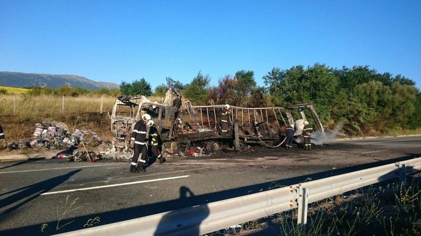 Все още не е ясно дали е избухнал резервоарът или част от товара на превозното средство. Предполага се, че са пострадали гумите.