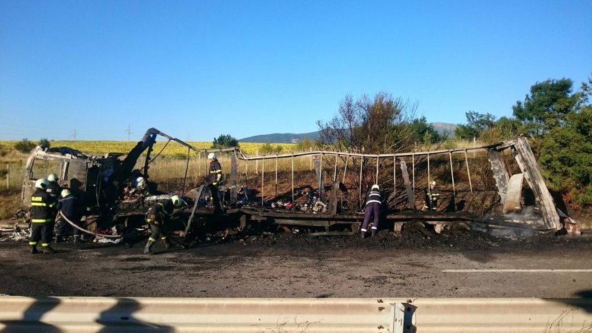 ТИР се запали на АМ "Струма" преди входа за София, близо до село Драгичево. Очевидци са чули няколко взрива.