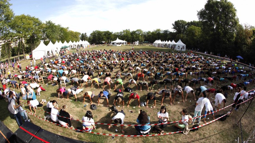 Днес на голямата поляна в Южния парк се събраха десетки ентусиасти в опит да подобрят световния рекорд на Гинес за най-много хора, правещи лицеви опори заедно.