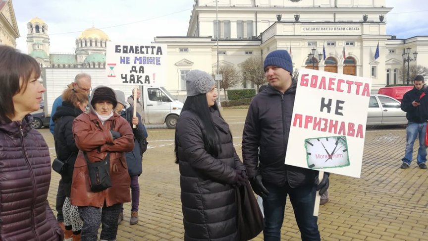 Пациенти и лекари излязоха на протест в София срещу приетия от депутатите мораториум за нови лекарства и нови терапии от следващата година.