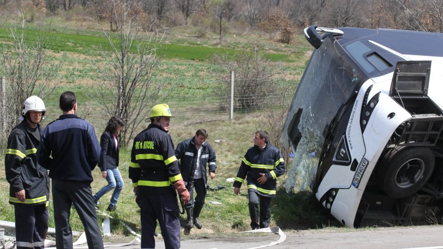 Десетима души загинаха, а над 20 бяха ранени при тежка катастрофа с автобус на 27-ия километър на магистрала "Тракия" край Вакарел. По първоначална индормация автобусът, който е собственост на фирма "Юнион Ивкони", се е сблъскал с лека кола - синьо "Рено" с плевенска регистрация. Причините за фаталния инцидент все още се изясняват, а сигналът за него е подаден в 11:25 часа. Най-вероятно голяма част от пътниците са били без предпазни колани.