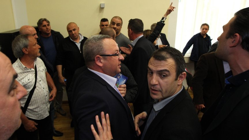 Напрежение и физически сблъсък на заседанието на Националния съвет на СДС, което се провежда в Дома на културата в "Красно село" в София.