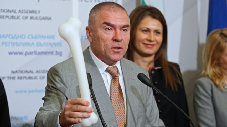 Веселин Марешки за пореден път нападна и вицепремиерите Валери Симеонов и Красимир Каракачанов и настоя за оставката им. Като този път метафорично дори размаха и пластмасов кокал в Народното събрание.