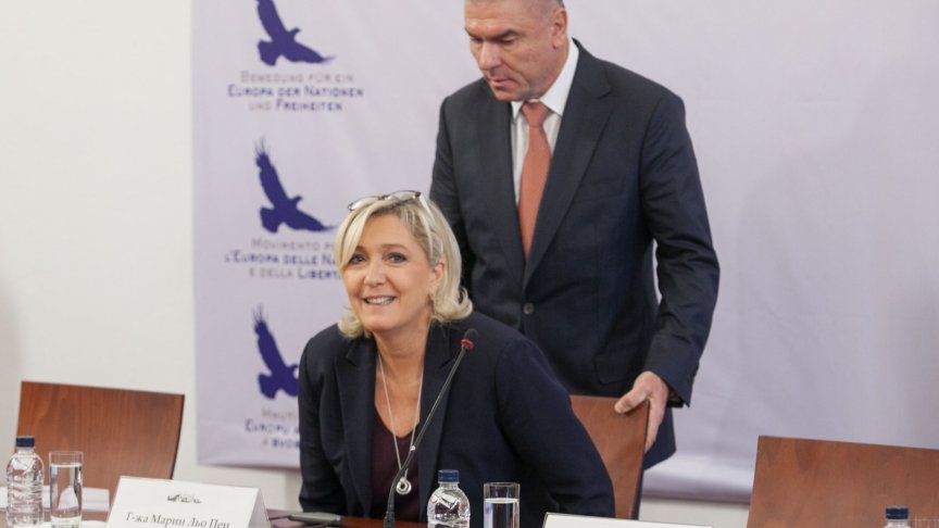 Марин льо Пен е в София за среща с националистическите и популистки съюзници от Източна Европа. Тя участва във форум под мотото& "Движението за Европа на нациите и свободата - нов модел за европейските граждани", чиито домакин бе партията на Веселин Марешки "Воля".