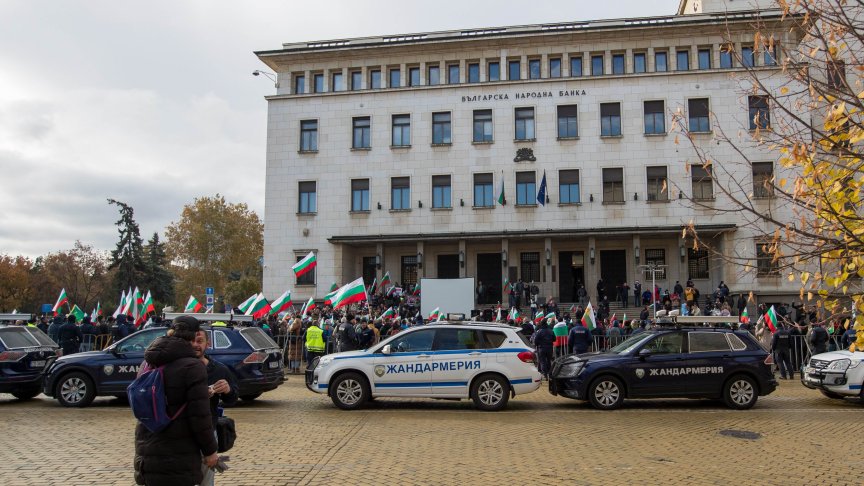 Докато новата власт минаваше по червения килим, отвън ги посрещаше публично недоволство. Общо седем протеста с различни искания блокираха центъра на София. Под прозорците на властта "ДПС-Ново начало" дадоха заявка за честно събрани гласове на изминалите избори, а от партия "Величие" за пореден път поискаха касиране на вота.