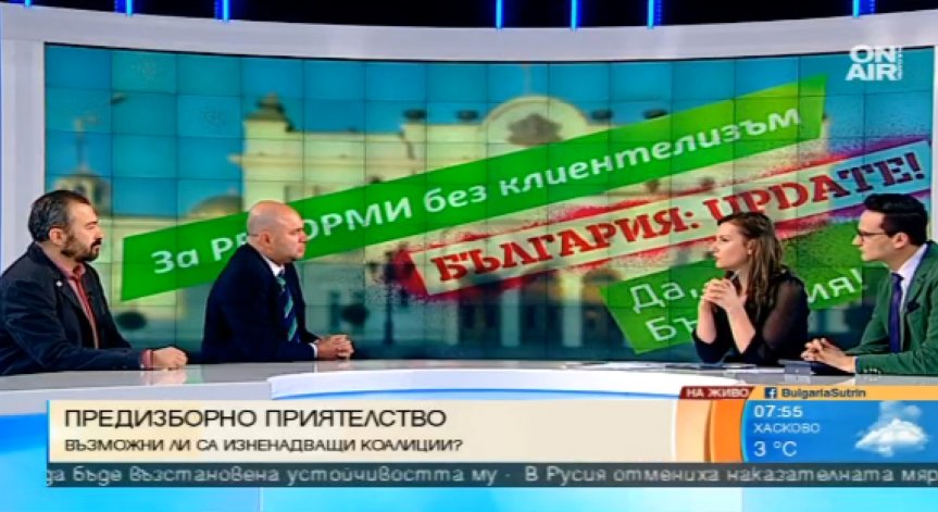 Владислав Панев се съгласи с мнението на Лилов и също вижда в лицето на "Нова република" най-логичния партньор в евентуален следващ парламент. Съпредседателят на "Зелените" уточни, че конкретната коалиционна форма е станала ясна буквално през последните дни и часове заради обстоятелствата около "Да, България".