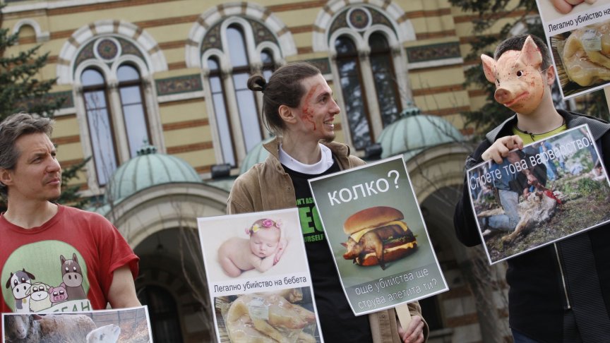 Пореден протест на веганите у нас се проведе вчера. Този път недоволството им е насочено към Българската православна църква. Те искат официално цървата да се обяви против жертвоприношенията на животни и да забрани на всичките си служители да ходят на жертвоприношения.