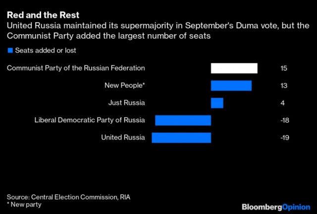 За повече от две десетилетия, откакто Владимир Путин за първи път пое кормилото, комунистите играят ролята на гъвкава опозиция, помагайки на Кремъл да поддържа фасадата на демократичния избор. Бъдещето изглежда по-малко предсказуемо, пише Клара Ферейра Маркес за Bloomberg.
