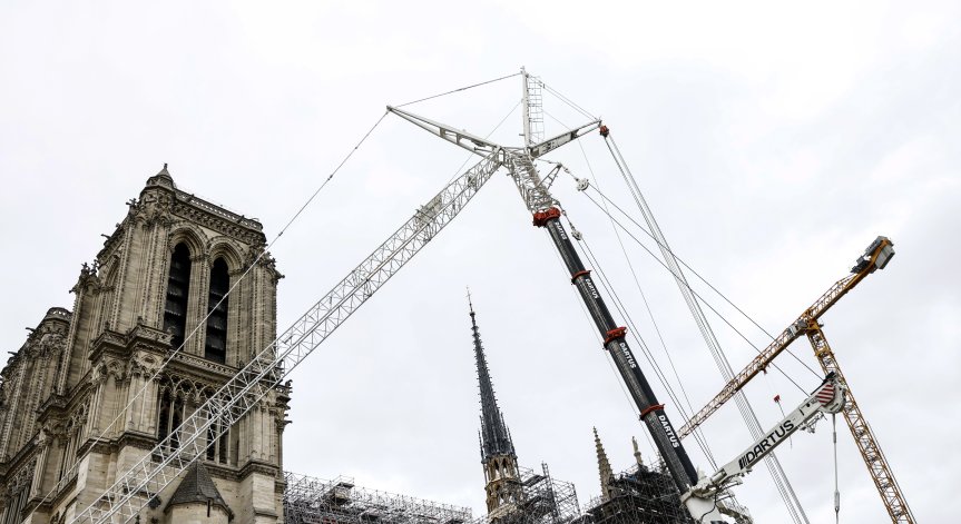 В Париж "строежът на века" върви към своя край. 12-метров кръст бе монтиран на изгорялата катедрала "Нотр Дам", като част от възстановяването на емблематичното здание в оригиналния му вид.