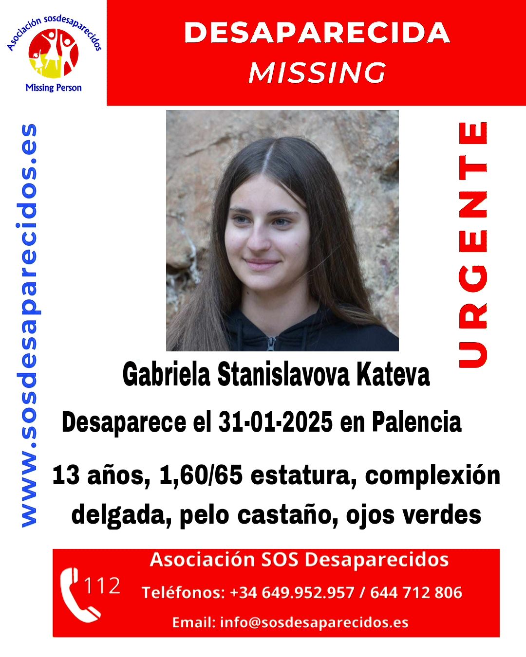 Българче на 13 години е в неизвестност в Испания. Габриела Станиславова Катева е видяна за последно на 31 януари в град Паленсия, съобщава "Mundo Deportivo".