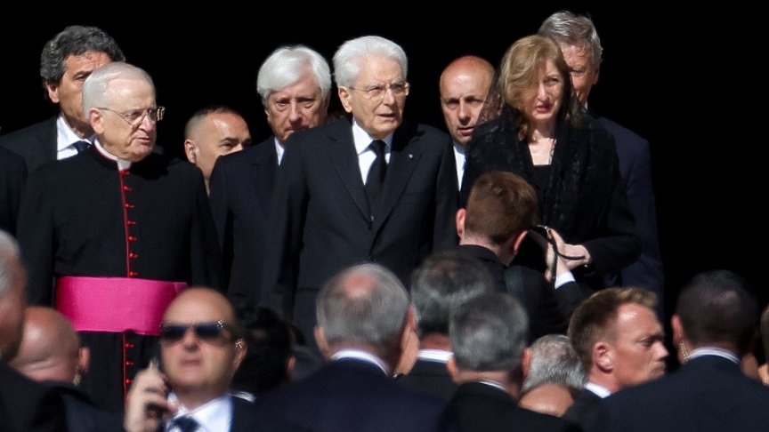 Двамата лидери проведоха кратък разговор по време на траурната церемония по погребението на папа Франциск.