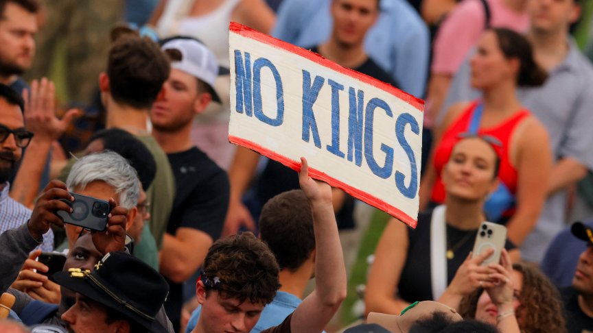Организаторите на "No Kings" твърдят, че протестиращите са се събрали в стотици градове, а журналисти са видели големи тълпи в няколко града. Организаторите заявиха, че протестират срещу диктаторските действия на Тръмп и по-специално срещу това, което описаха като символиката на силата в парада.