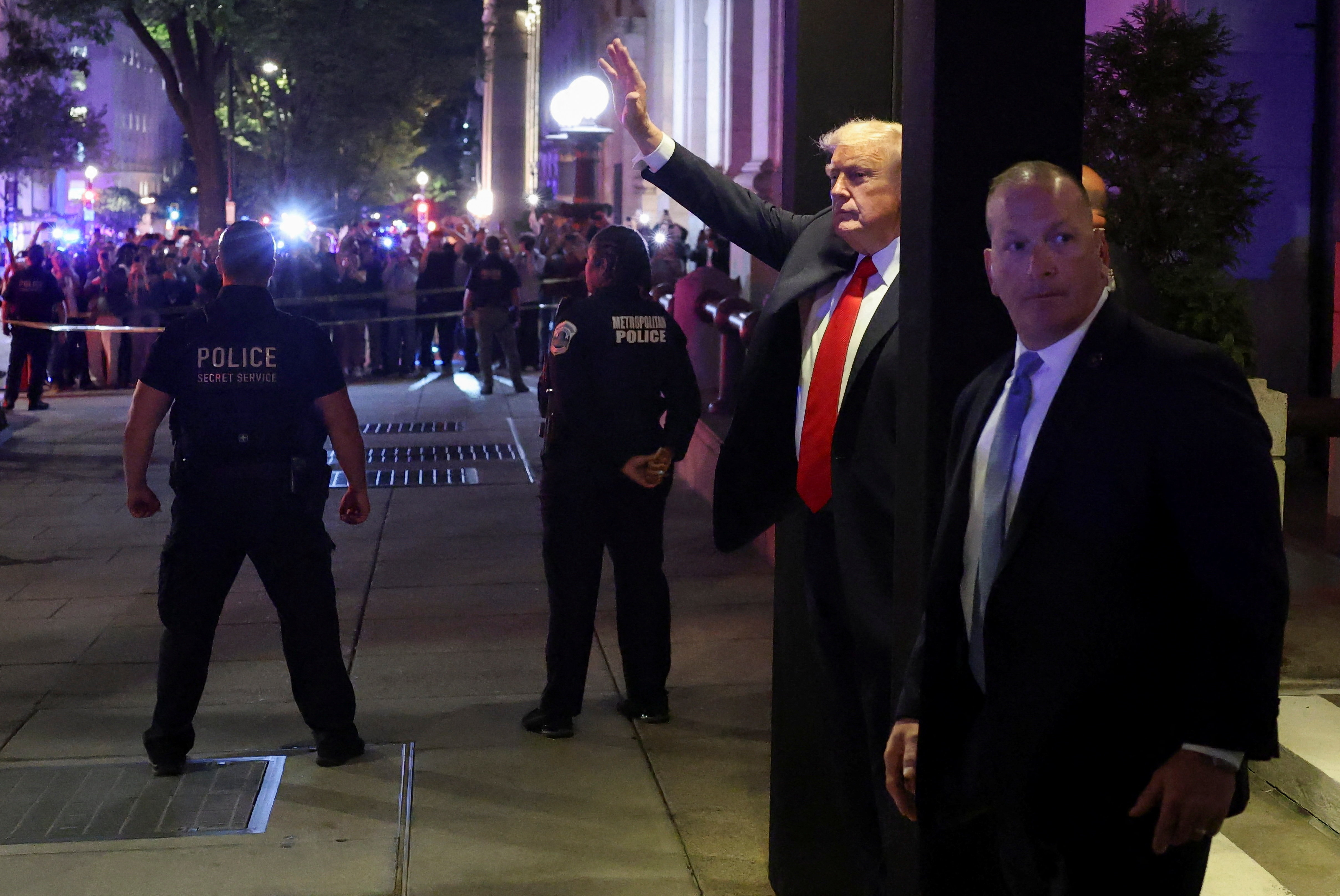Видеоклипове в социалните медии показаха момент, в който протестиращи започнаха да освиркват американския президент в ресторант във Вашингтон, викайки "Свобода за Вашингтон, Свобода за Палестина, Тръмп е Хитлер на нашето време".