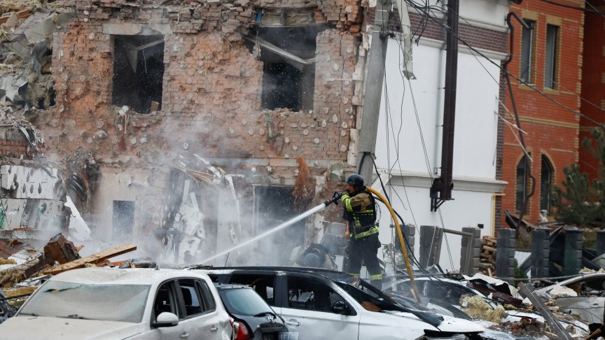 С близо 500 бойни дрона и повече от 40 ракети, включително ракети "Кинжал", Русия атакува Украйна.