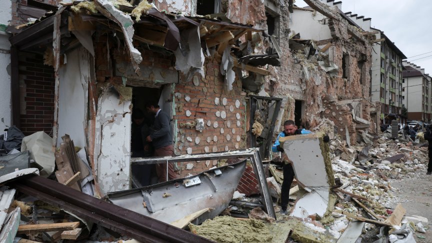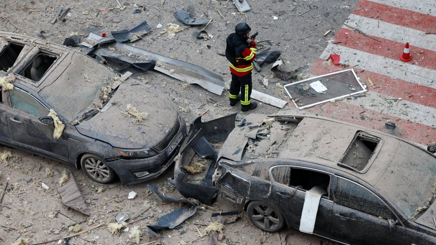 С близо 500 бойни дрона и повече от 40 ракети, включително ракети "Кинжал", Русия атакува Украйна.