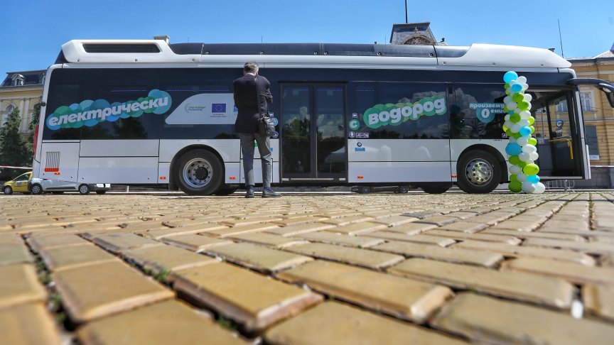 Водороден автобус ще пътува по линия на тролейбус №9 в София. Първият курс започна преди минути, а организатор е Институтът по електрохимия и енергийни системи към БАН.