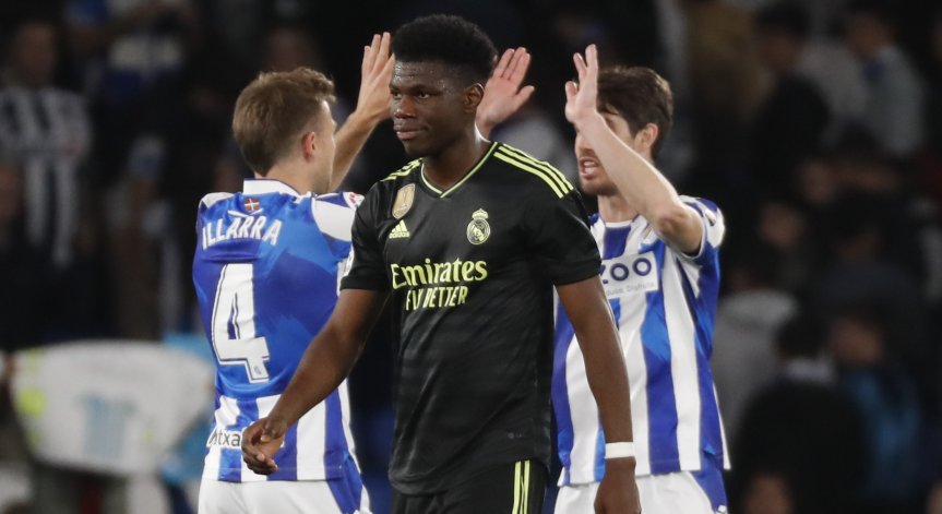Първото положение беше на сметката на мадридския гранд - Едер Милитао засече с глава след корнер и затрудни Ремиро. Субименди направи невероятен пропуск на метър от празната врата и прати топката в гредата. После Тибо Куртоа спаси с крак изстрел на Давид Силва.