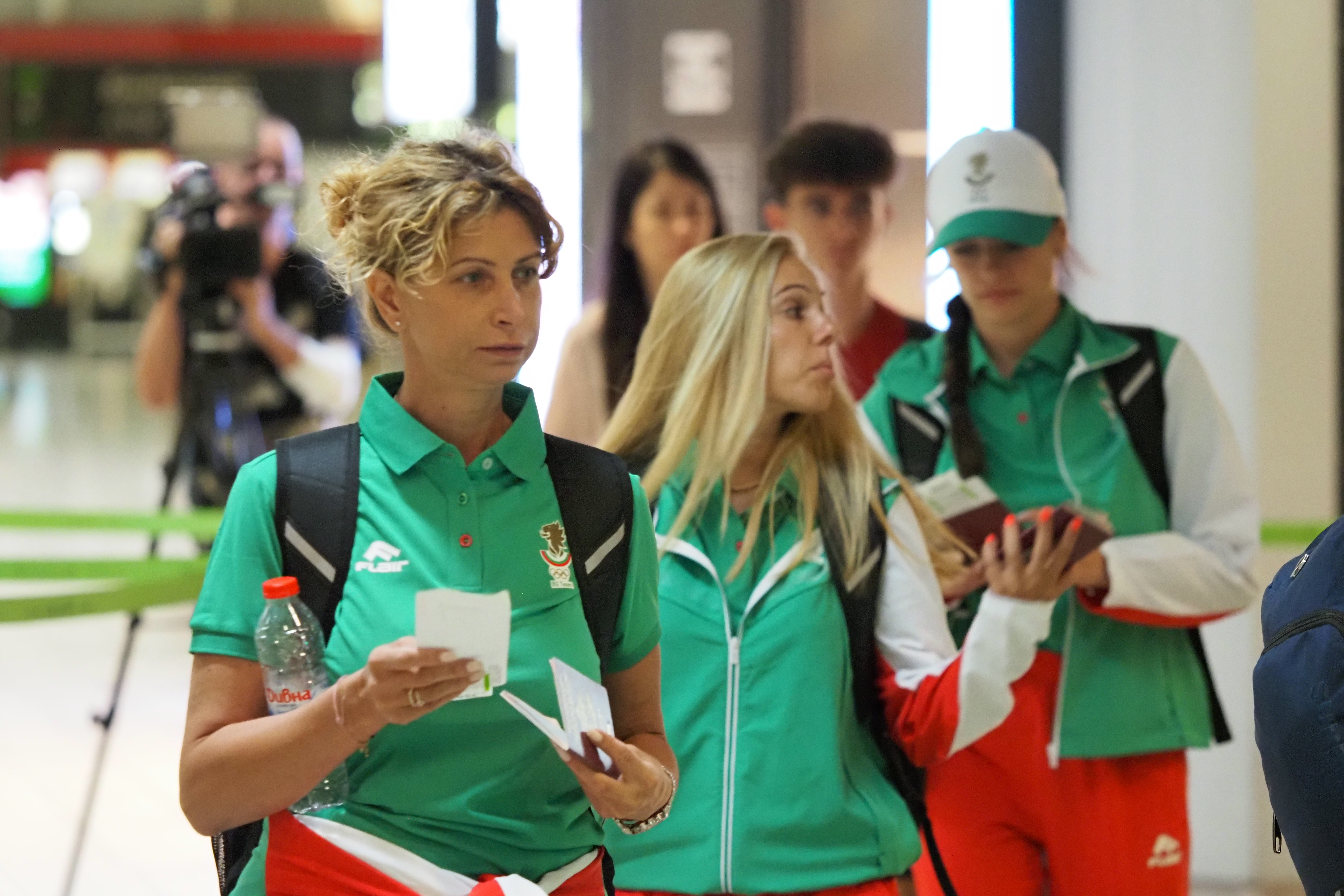 За Париж заминаха и треньорите Валентина Иванова, Мариана Памукова, Бранимира Маркова (индивидуално) и Весела Димитрова и Ясена Стойнева (ансамбъл), резервата в индивидуалното Елвира Краснобаева, както и президентът на Българската федерация по художествена гимнастика Илиана Раева.