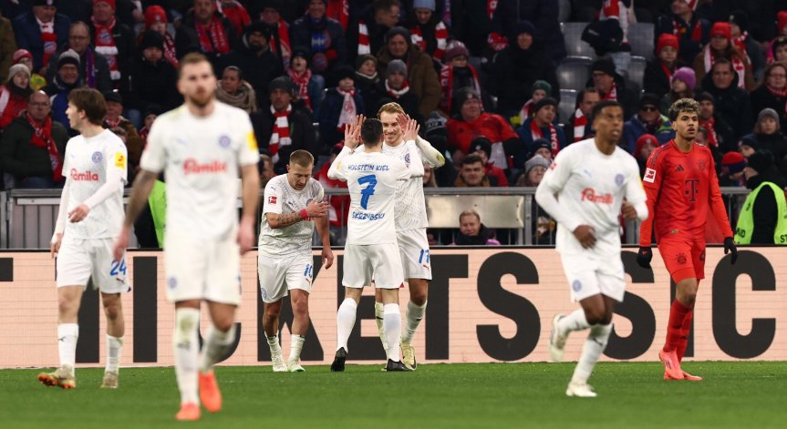 "Байерн" (Мюнхен) победи с 4:3 "Холщайн" (Кил) в мач от 20-ия кръг на Бундеслигата. Джамал Мусиала, Хари Кейн на два пъти и Серж Гнабри бяха точни за баварците, а за гостите се разписаха Фин Порат и Стивън Скржибски, който вкара два гола в добавеното от съдията продължение.
