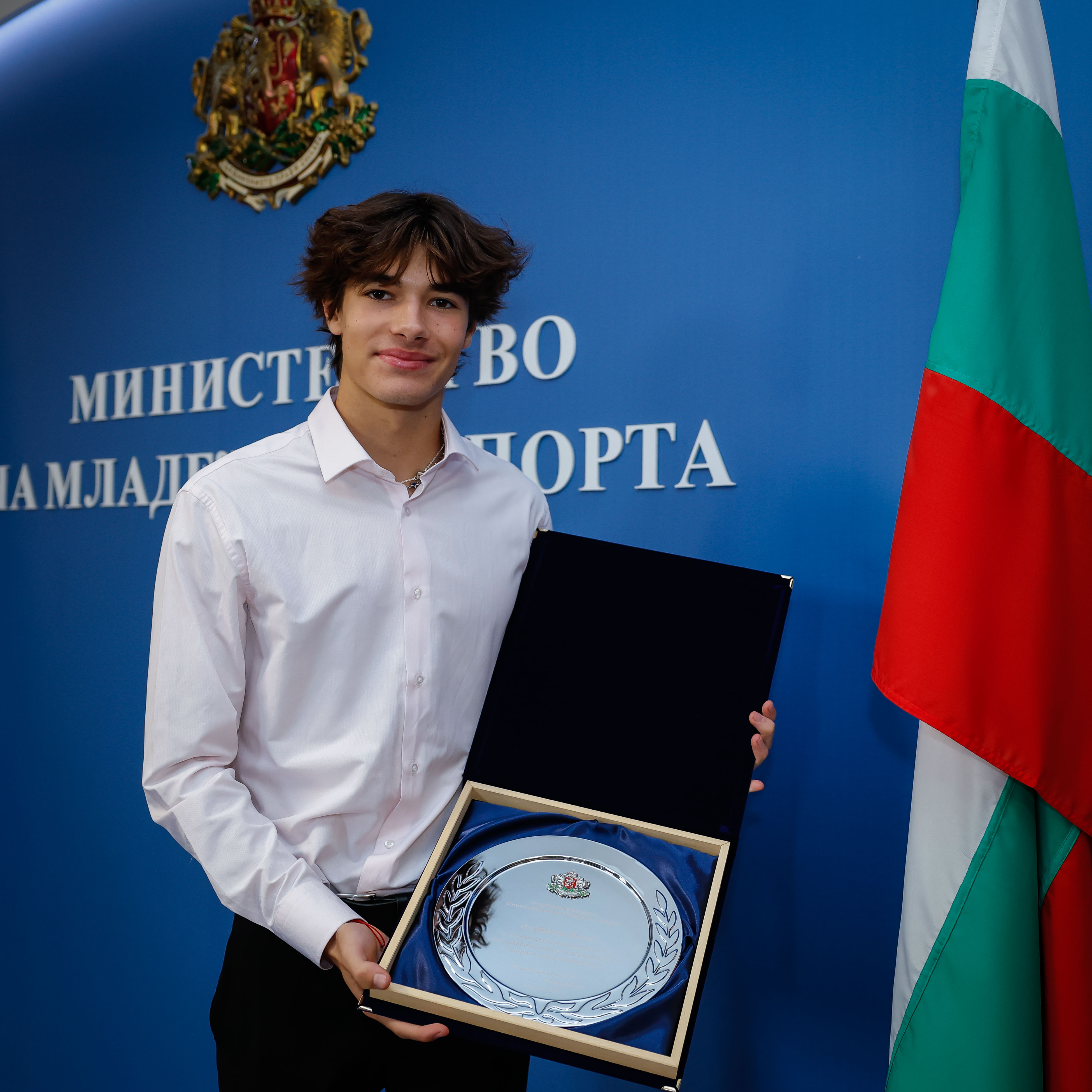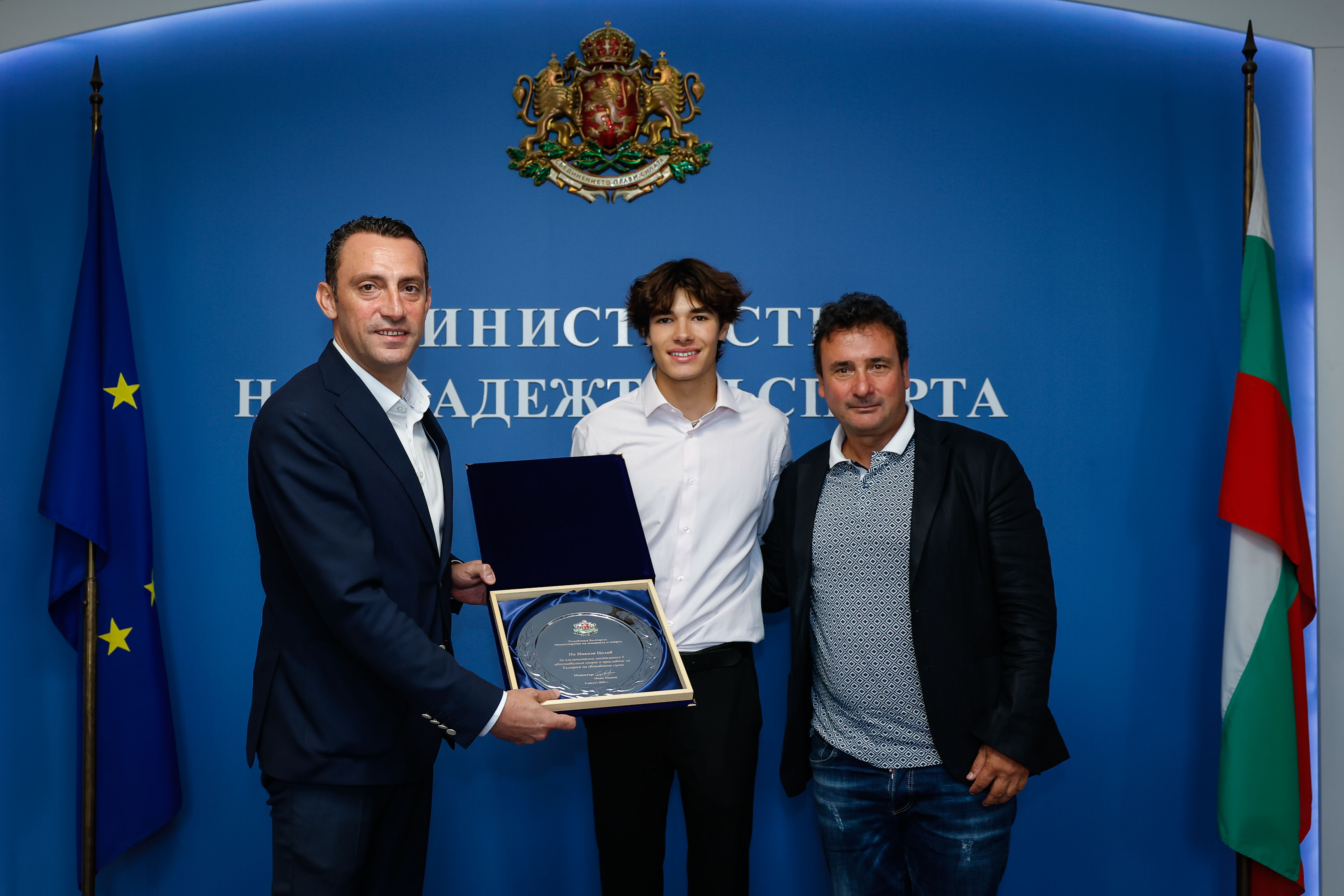 Министърът на младежта и спорта Иван Пешев връчи почетен плакет на българския автомобилен състезател Никола Цолов за изключителните му постижения във Формула 3.